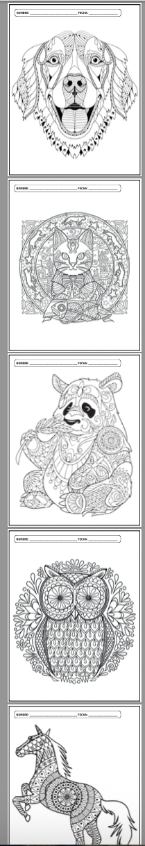 Disfruta de esta exclusiva selección de más de 20 ilustraciones de animales con intrincados diseños estilo mandala, perfectas para adultos y niños.